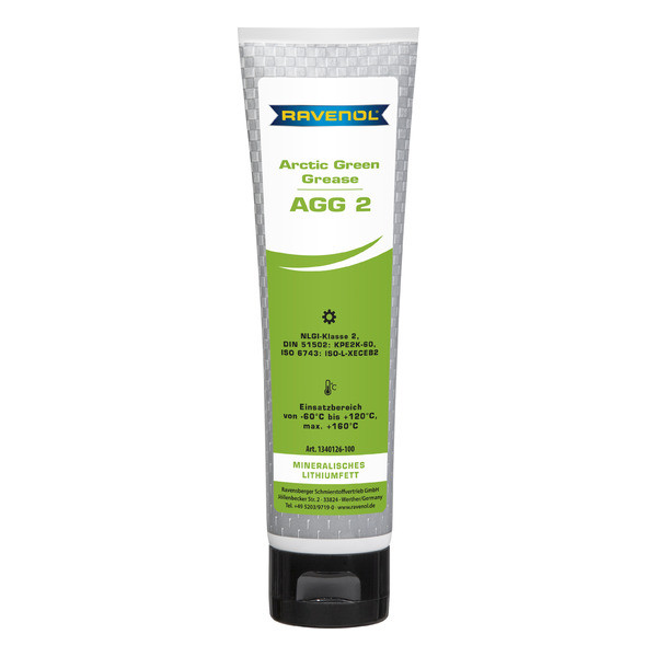 RAVENOL Arctic Green Grease AGG 2 үчүн үзгүлтүксүз иштөөдөгү жогорку температуралык чектөө: +120 °C. Кыска мөөнөттө 160 °Cден ашырбоо сунушталат.