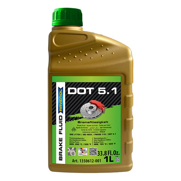 RAVENOL DOT 5.1 тормоз суюктугу ABS менен жабдылган бардык унааларда колдонууга ылайыктуу. Суюктук химиялык жактан туруктуу жана максималдуу майлоону камсыз кылган кошулмаларды камтыйт.