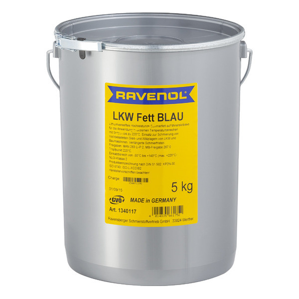 RAVENOL LKW Fett Blau – минералдык негиздеги, литий самыны менен коюуланган көп функционалдуу автоунаа майы. Курамында антиоксиданттык жана коррозияга каршы кошумчалар бар.