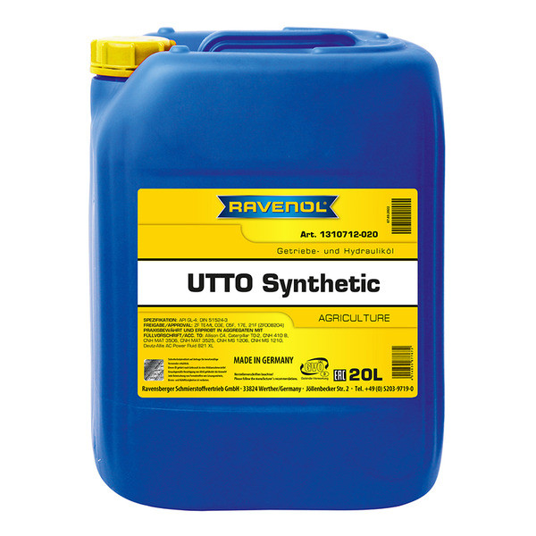 RAVENOL UTTO Synthetic is a combined transmission and hydraulic oil on the basis of solvent refined base oils. It is a special developed universal oil which can be used in combined hydraulic and transmission systems of modern tractors. High quality base oils and exclusive additives guarantee a trouble-free operation of all aggregates at any season.