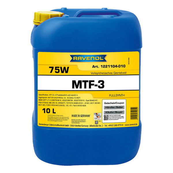 RAVENOL MTF-3 SAE 75W полностью синтетическое трансмиссионное масло для коробок передач, раздаточных коробок и дифференциалов.